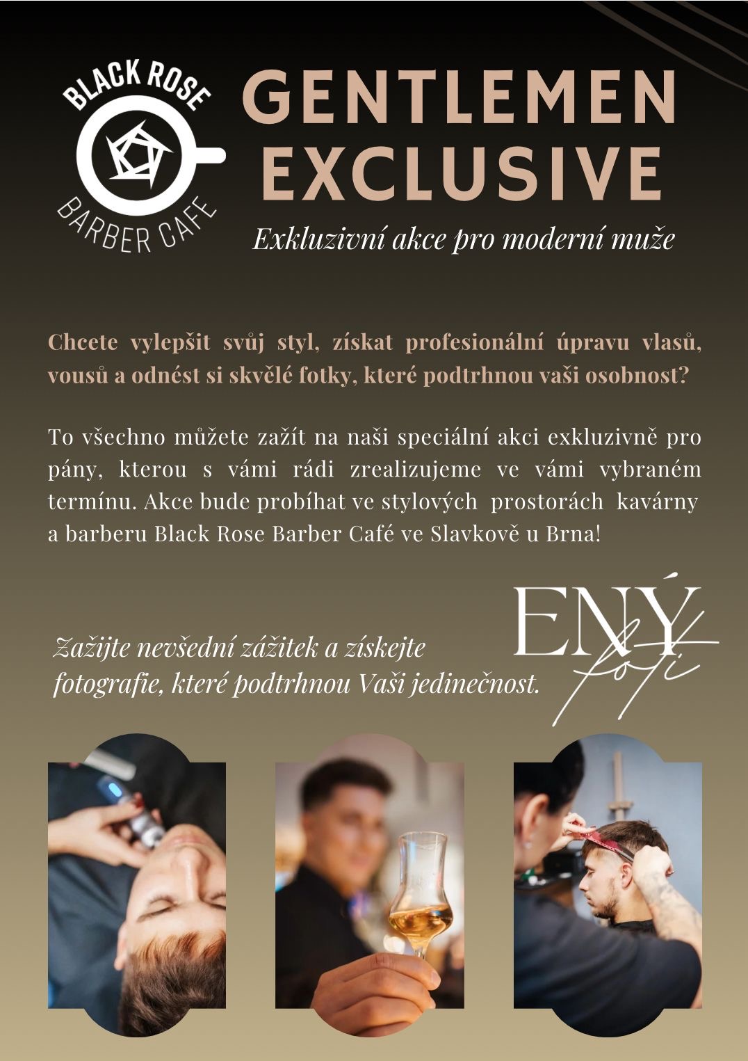 Již delší dobu spolupracuji s Black Rose Barber Café a společně jsme vytvořili jedinečnou akci, která spojuje precizní pánskou péči, luxusní degustaci a profesionální focení. Cílem této spolupráce bylo nabídnout mužům víc než jen službu. Vytvořili jsme zážitek, na který se nezapomíná a ze kterého si každý odnese nejen skvělý pocit, ale i hmatatelnou vzpomínku.